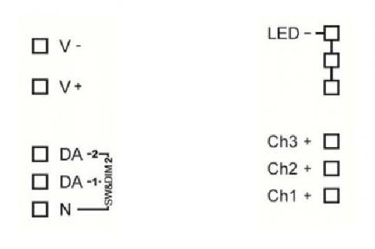 Ein Kurzschlussschluss ist integriert. Außerdem hat der 3-Kanal Konstantstrom-LED-Dimmer geringe Standby-Verluste und einen hohen Wirkungsgrad.