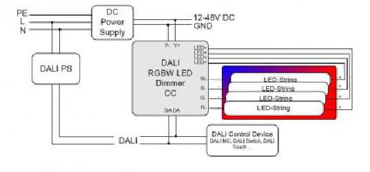 Ein Kurzschlussschluss ist integriert. Außerdem hat der RGBW Konstantstrom-LED-Dimmer geringe Standby-Verluste und einen hohen Wirkungsgrad.