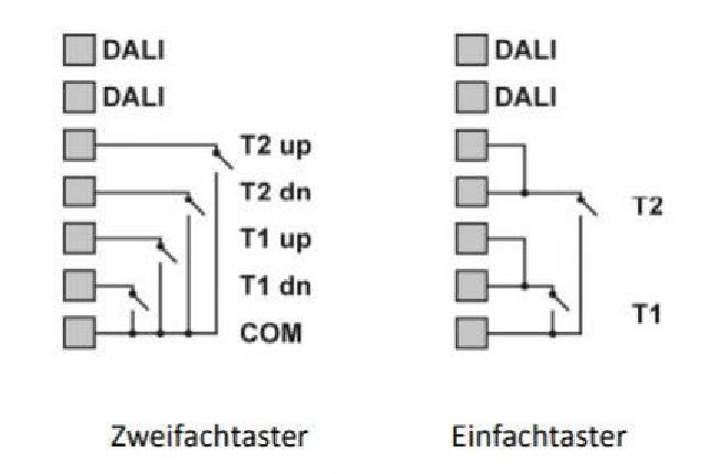 Die Auswahl der entsprechenden DALI-Gruppen erfolgt mithilfe eines Drehschalters am Modulgehäuse. Die Eingänge können mit Standardtastern beschalten werden. Die Taster werden direkt am Modul angeschlossen (potentialfreie Schließkontakte). Es können mehrere Module in einem DALI-Kreis installiert werden.