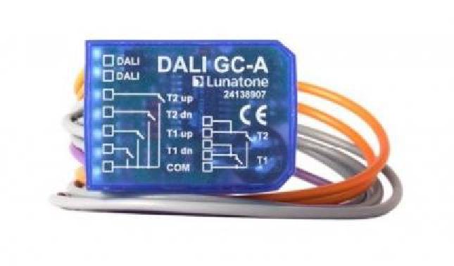 Bei dem Lunatone Lichtmanagement Steuermodul DALI GC-A handelt es sich um ein kleines kompaktes Einbau-Modul zum Ansteuern zweier vordefinierter DALI-Gruppen mit konventionellen Einzel- oder Zweifach-Lichttastern.