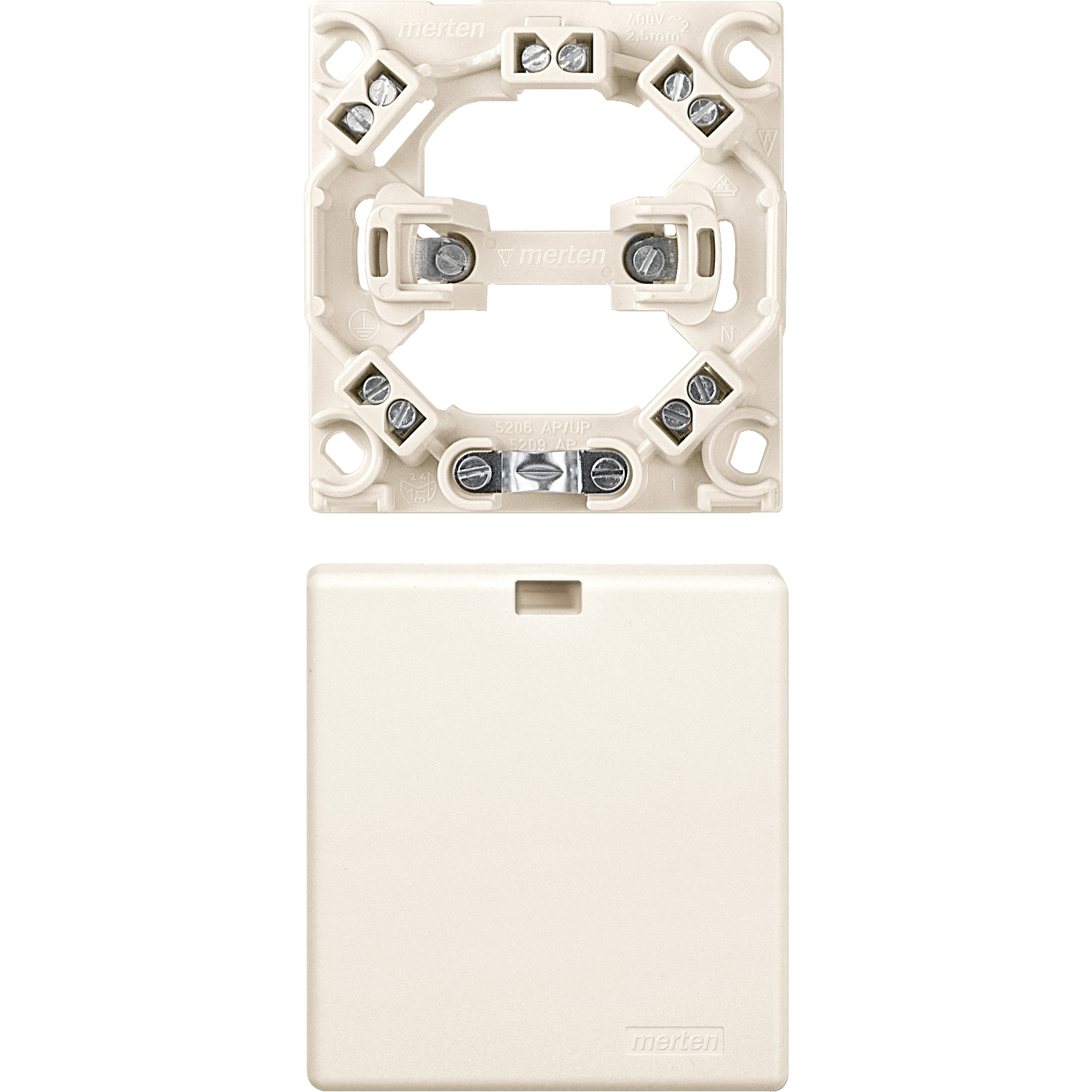 Mit bruchgeschütztem Deckel und Schnappverschluss. Schraub- und Krallenbefestigung für 60er- und 70er-UP-Dosen, mit herausnehmbaren Spreizkrallen. Großer, übersehbarer Anschlussraum. Dübelbefestigung sowie Kabeleinführung von oben ebenfalls möglich. Zugentlastung. Farbe weiß.