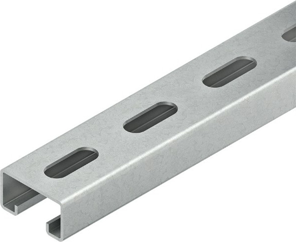 Anker-/Profilschiene Modell 2986, C-Profil ähnlich DIN EN 60715, gelocht. Passende Bügelschellen (BU... und BUK...). In persönlichen Gefährdungsbereichen ist die Schutzkappe SKC 86 anzuordnen. Um ein problemloses Aufsetzen der Schutzkappe zu gewährleisten, ist ein Abstand von mind. 30 mm zum Profilende freizuhalten. Abmessungen (ca. Maße) H x B x t : 22 x 40 x 1,75 mm Schlitzweite : 18 mm Profillochung : 11,5 x 30 mm mittiger Abstand : 50 mm Lieferlänge L : 2000 mm Werkstoff : Stahl, bandverzinkt nach DIN EN 10346