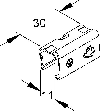 Deckelhaltefeder, mit formschlüssigen und unverlierbaren Sitz auf dem Deckel, im montierten Zustand, insbesondere mit rutschsicheren Deckeln, wird ein Verschieben auf der Rinne in horizontaler / vertikaler (= 150 N) Richtung unterbunden, die Deckelhaltefedern erlauben eine einseitige Öffnung des Deckels bis max. 20° und ermöglichen somit eine zusätzliche Nachinstallation bzw. Inspektion von Leitungen, zur Befestigung - Clip-/Klemmfunktion - der Deckel an wandmontierte und freistehende Steigetrassenverkleidungen. Des Weiteren für schwere Kabelrinnendeckel mit und ohne Riffelblechauflage sowie für winkelverstellbare Formstücke 0°-90° im begehbaren Kabelrinnensystem. Bei der Befestigung ist darauf zu achten, dass ein Mindestabstand von = 50 mm zum Deckelanfang/-ende eingehalten werden muss. Durch die spezielle Form/Kontur ist der Potentialausgleich sichergestellt. Bedingt durch äußere Einflüsse, wie z.B. Windlasten, ist eine Verwendung im Außenbereich nur mit einer zusätzlichen Sicherung (selbstschneidende Schrauben, Stahlband etc.) möglich. für Steigetrassenverkleidungen : STVW... STVWA... STVFA... für begehbare Kabelrinnen : RDS... RDRS...-2.0 RDSRSL... RDSRS... für winkelverstellbare Formstücke 0°-90° : RBAVDS... RBAVDSRS... Bedarf : Deckelkurzstücke < 200 mm min. 2 Deckelhaltefedern Deckelkurzstücke = 200 - 1000 mm min. 4 Deckelhaltefedern Deckelstücke = 1000 mm min. 6 Deckelhaltefedern Abmessungen (ca. Maß) Länge L : 30 mm Werkstoff : Stahl, galvanisch verzinkt und passiviert, Deckschicht versiegelt