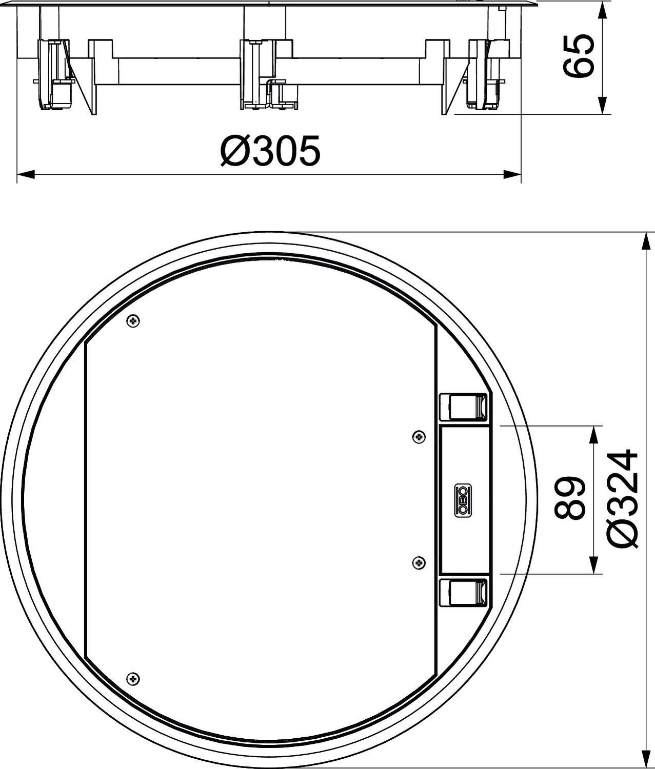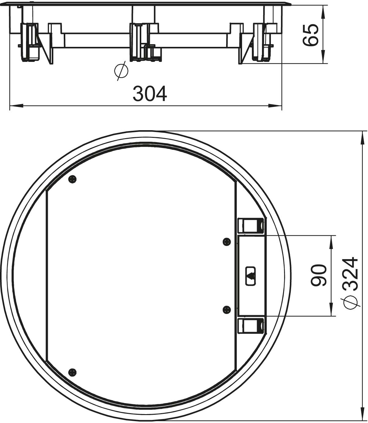Bodenbelagaussparung im Klappdeckel 5 mm, bei Bedarf auch einstellbar auf 3, 10 oder 12 mm.