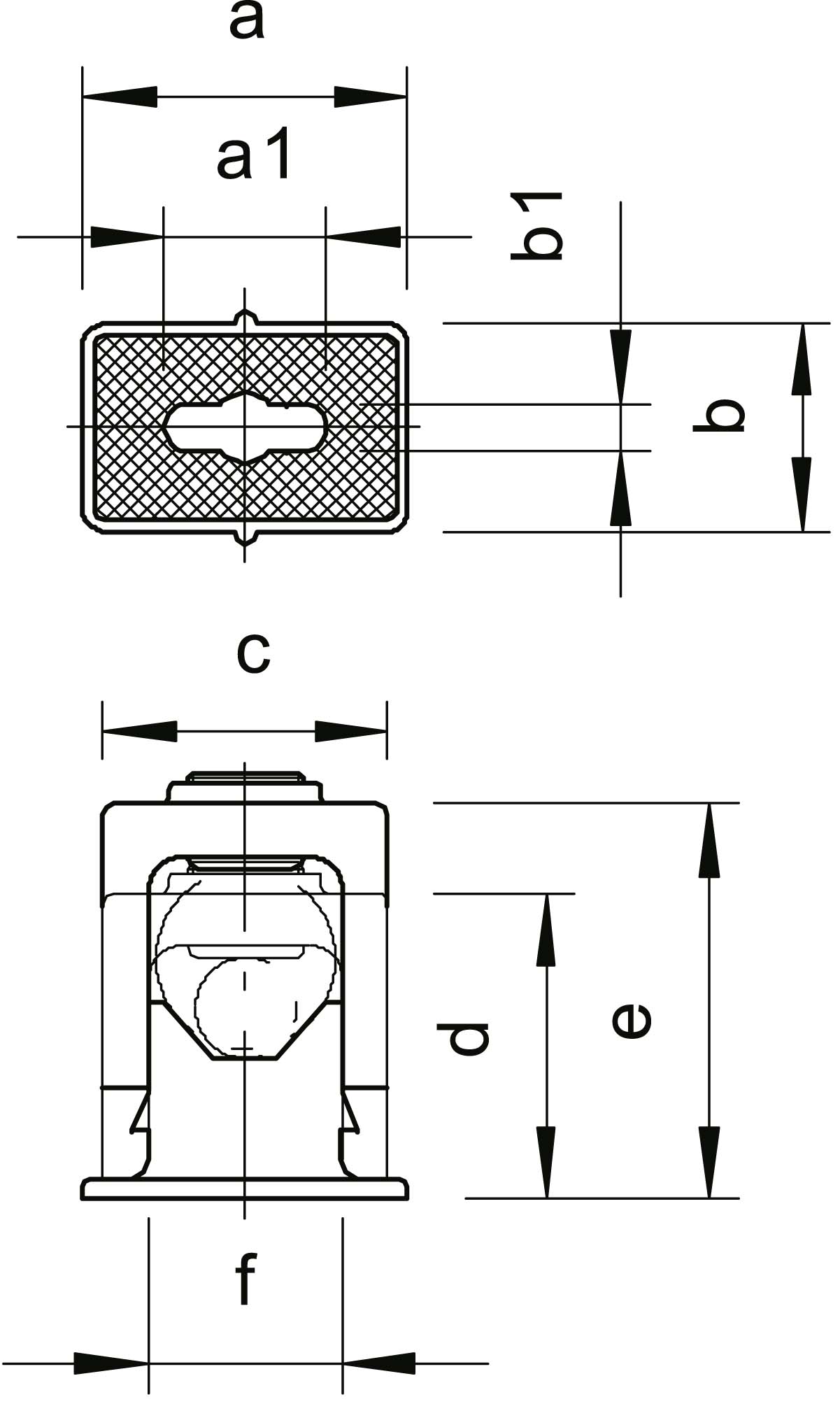 Solide Kabelbefestigung durch Klemmschrauben, mit Klebefuß, Langloch und zum Aufschrauben auf Gewinde M6.