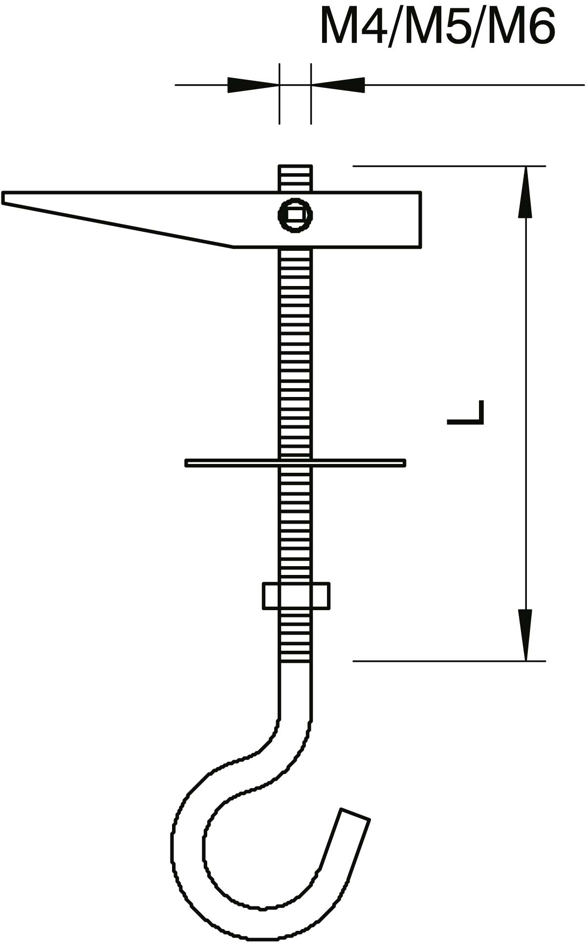 1 U-Scheibe und 1 Sechskantmutter, mit Deckenhaken.