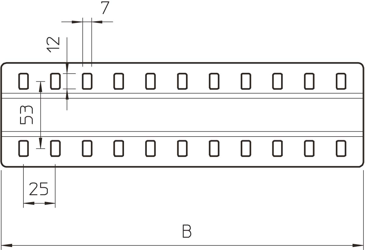 Stoßstellenleiste in breiter Ausführung für den Einsatz in allen Kabelrinnen und Weitspannkabelrinnen.