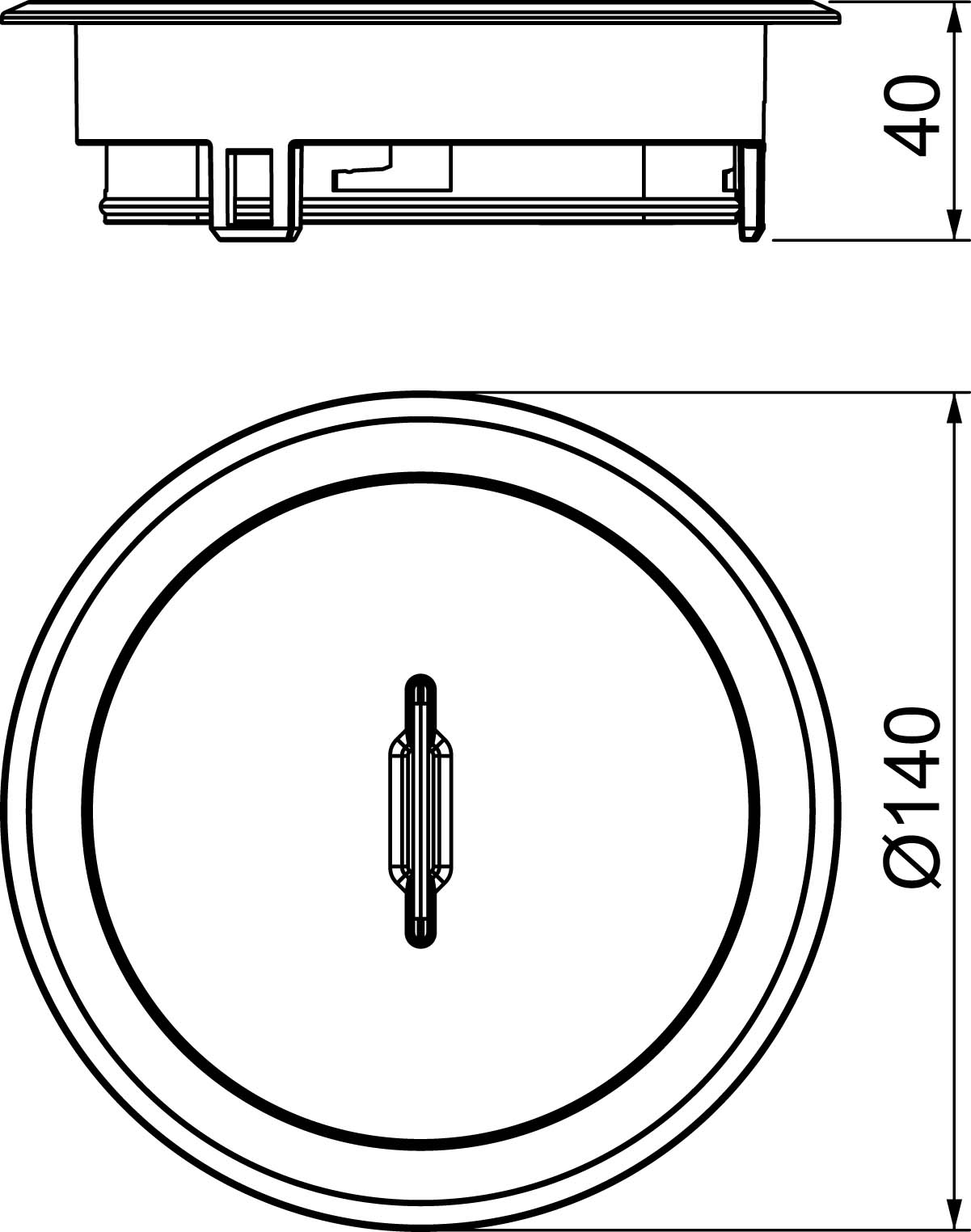 Geräteeinsatz mit Tubus und Griffbügel für Bodensteckdose GES R2 zum direkten Einbau in die Installationsdose MT R2 im Innenbereich.