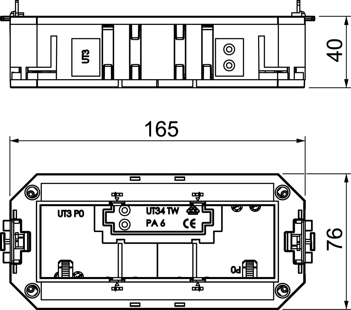 Universalträger mit zwei Zugentlastungen, Montagebrücken, Trennwand und Abdeckplatte UT3 P3 für Einbau von 3 Modul 45-Geräten in Geräteeinbaueinheiten der Nenngrößen 2, R4, 4 und R7.