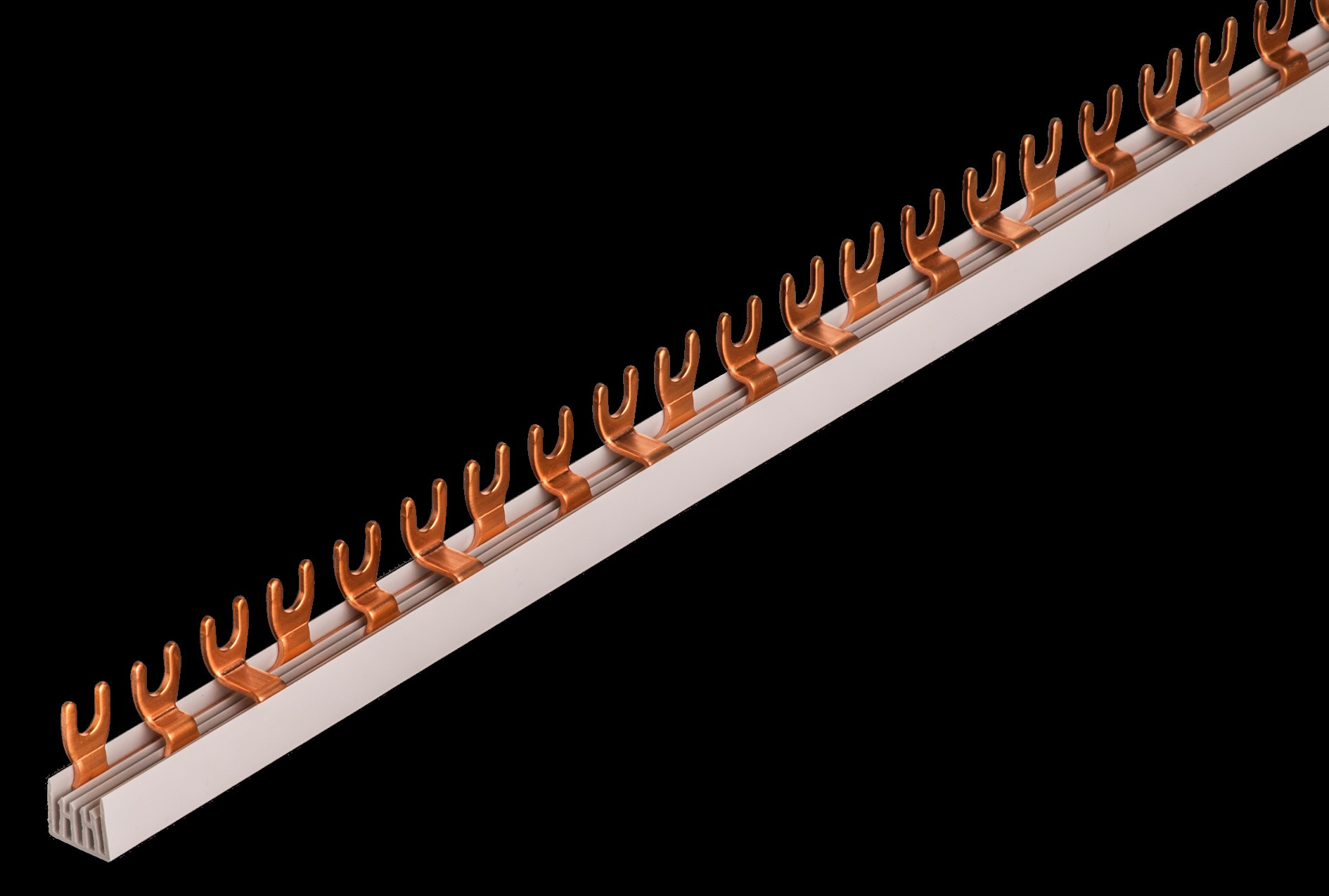 Phasenschiene, 3-phasig, Sammelschienenaustritt oben für LS mit Schraubanschluss oder Doppelfunktionsklemme.
