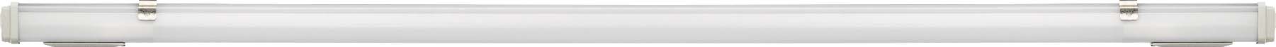 Feuchtraum-Anbauleuchte mit schmalem, flachem, allseitig geschlossenem Leuchtengehäuse aus lichtdurchlässigem, opalisiertem Polycarbonat (schlagfest), Endstücke aus PBT (schlagfest), kurze, alterungsbeständige Dichtungen, einfache Installation durch zwei geräumige Netzanschlussräume, Hoch-Leistungs-LED, breitstrahlend mit Deckenaufhellung, Konverter im Gehäuse eingebaut, Konverter und LED- Module sind einfach wechselbar, variable Befestigungsabstände durch PRACHT-KLAMMER-SYSTEM aus rostfreiem Stahl, geeignet für Decken- und waagerechte Wandmontage, Pendel- und Tragschienenmontage mit Zubehör möglich.