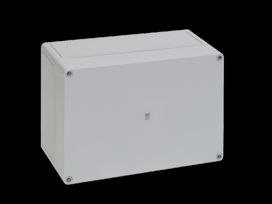 PK Polycarbonat-Gehäuse, BHT: 254x180x111 mm, glasfaserverstärktes Polycarbonat, ohne Vorprägungen, mit Deckel grau