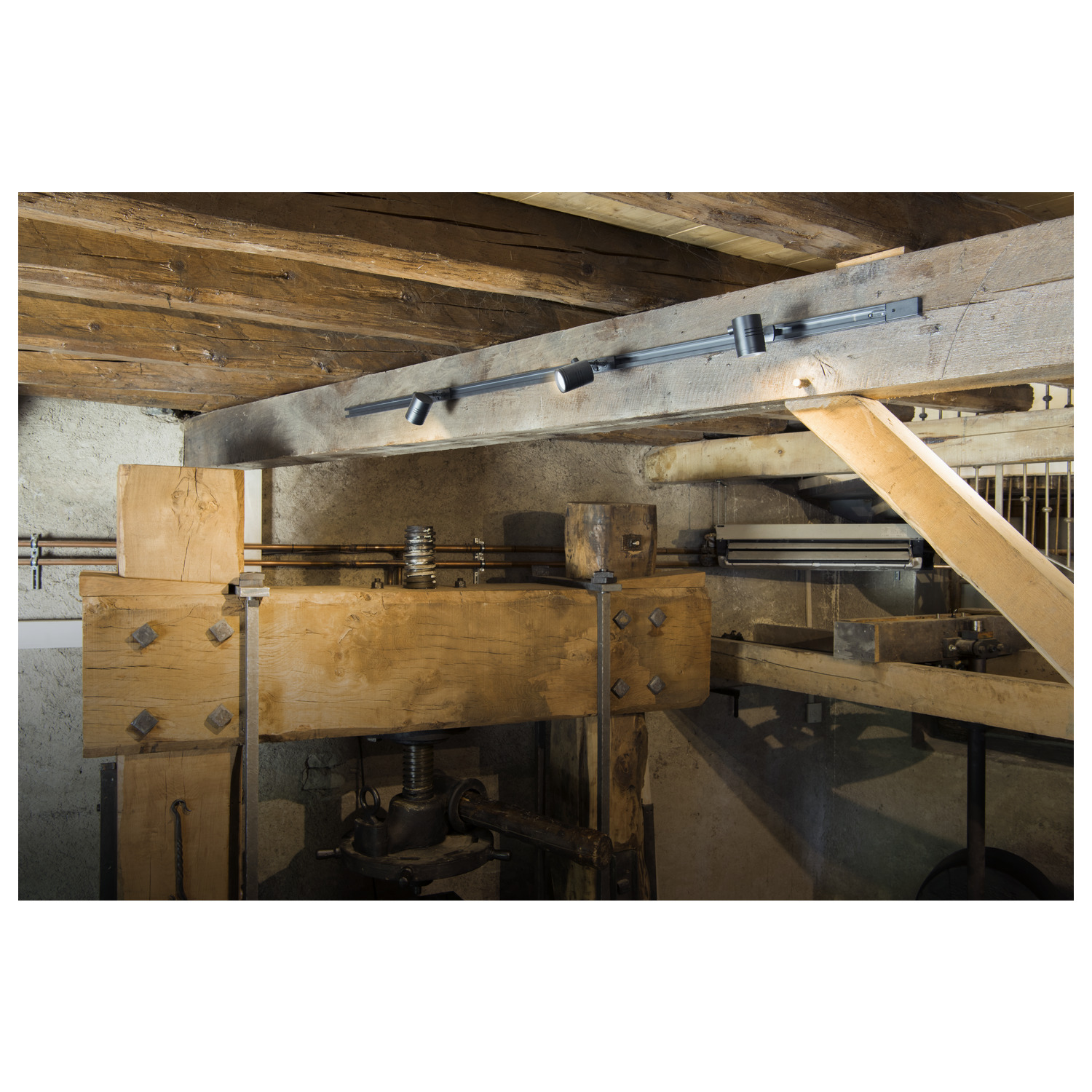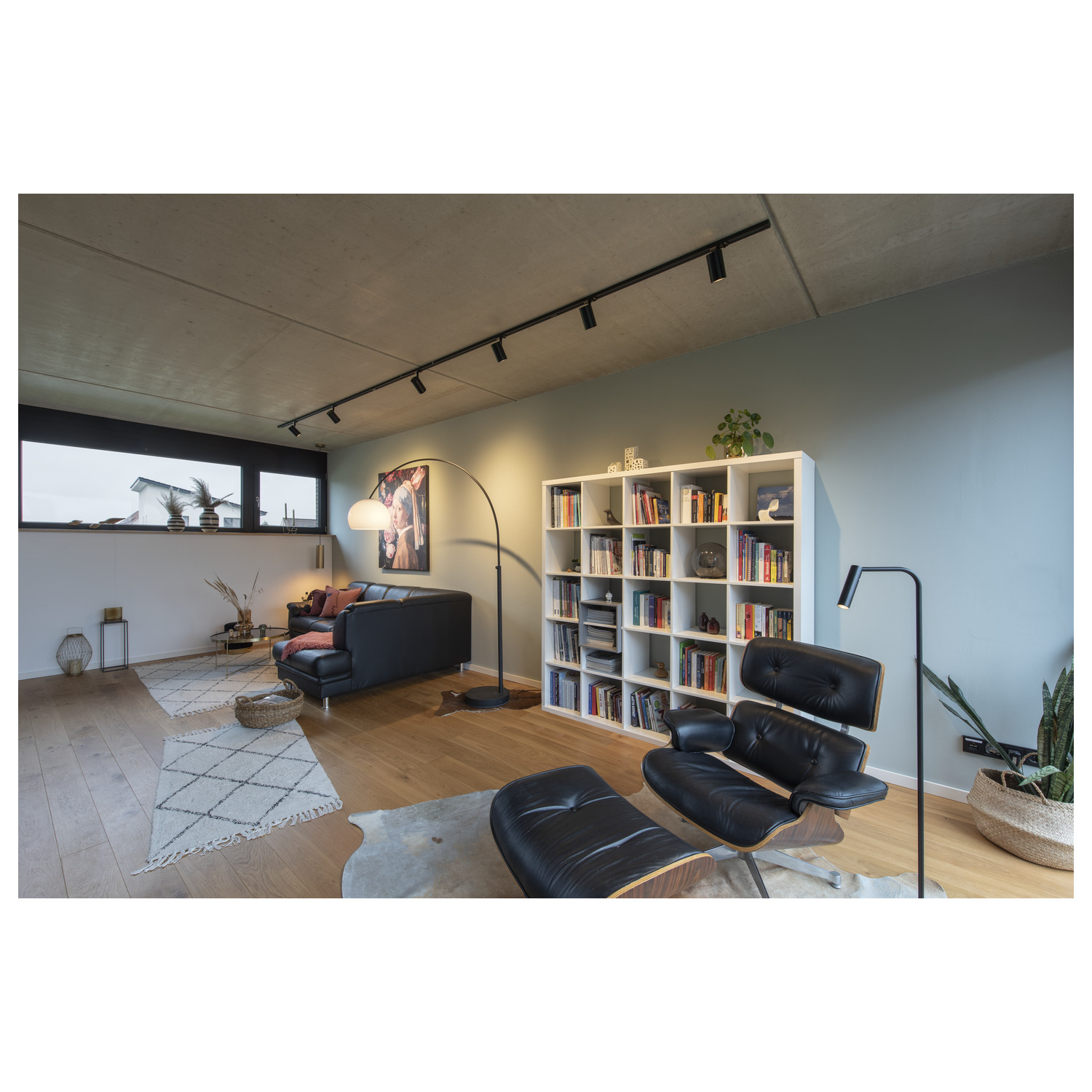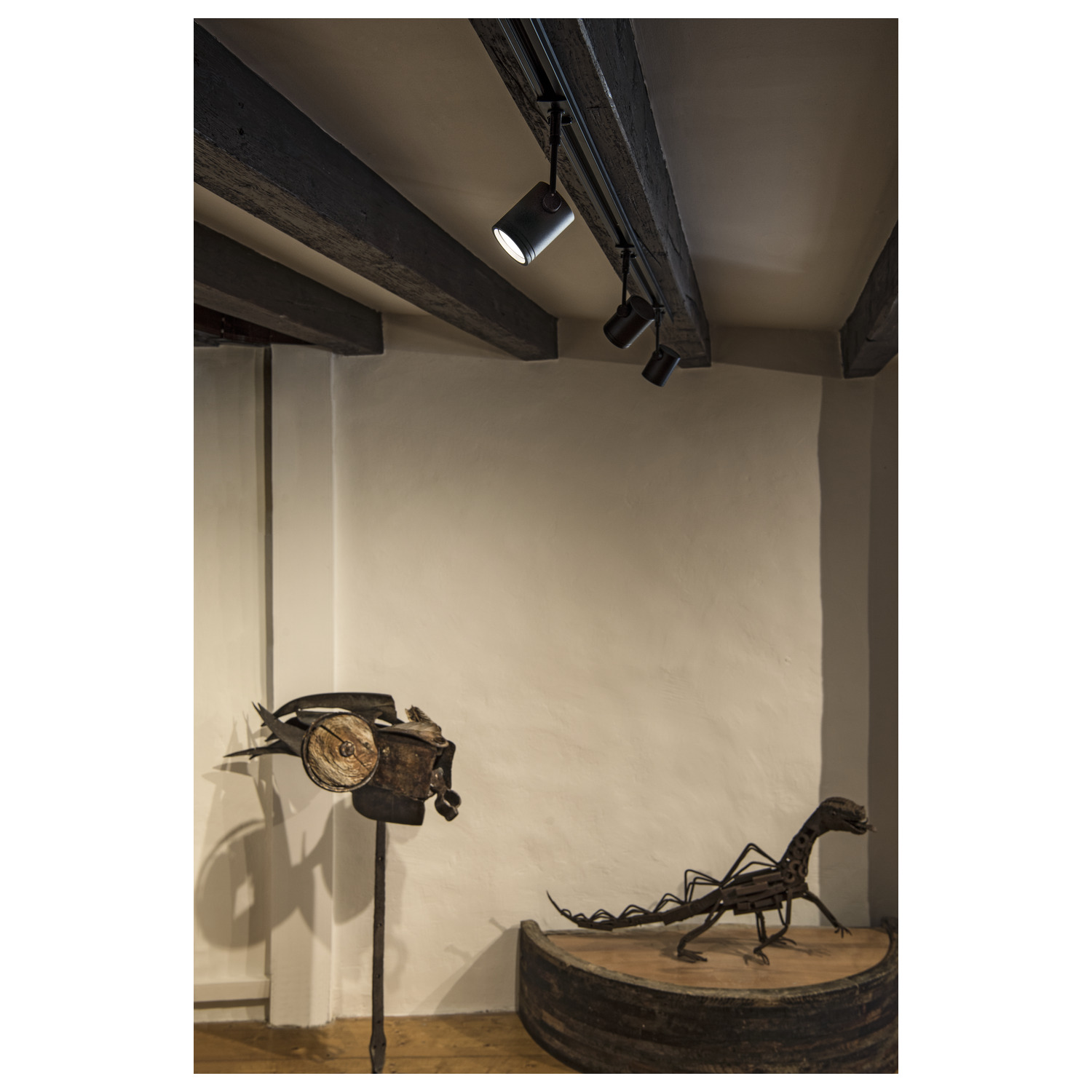 Dreh- und schwenkbarer Hochvoltstrahler BIMA 1 mit passendem Adapter für das 1Phasen Hochvolt-Schienen-System. Die aus Aluminium gefertigte Leuchte ist durch den verbauten GU10 Sockel für Halogen- sowie LED-Leuchtmittel geeignet.