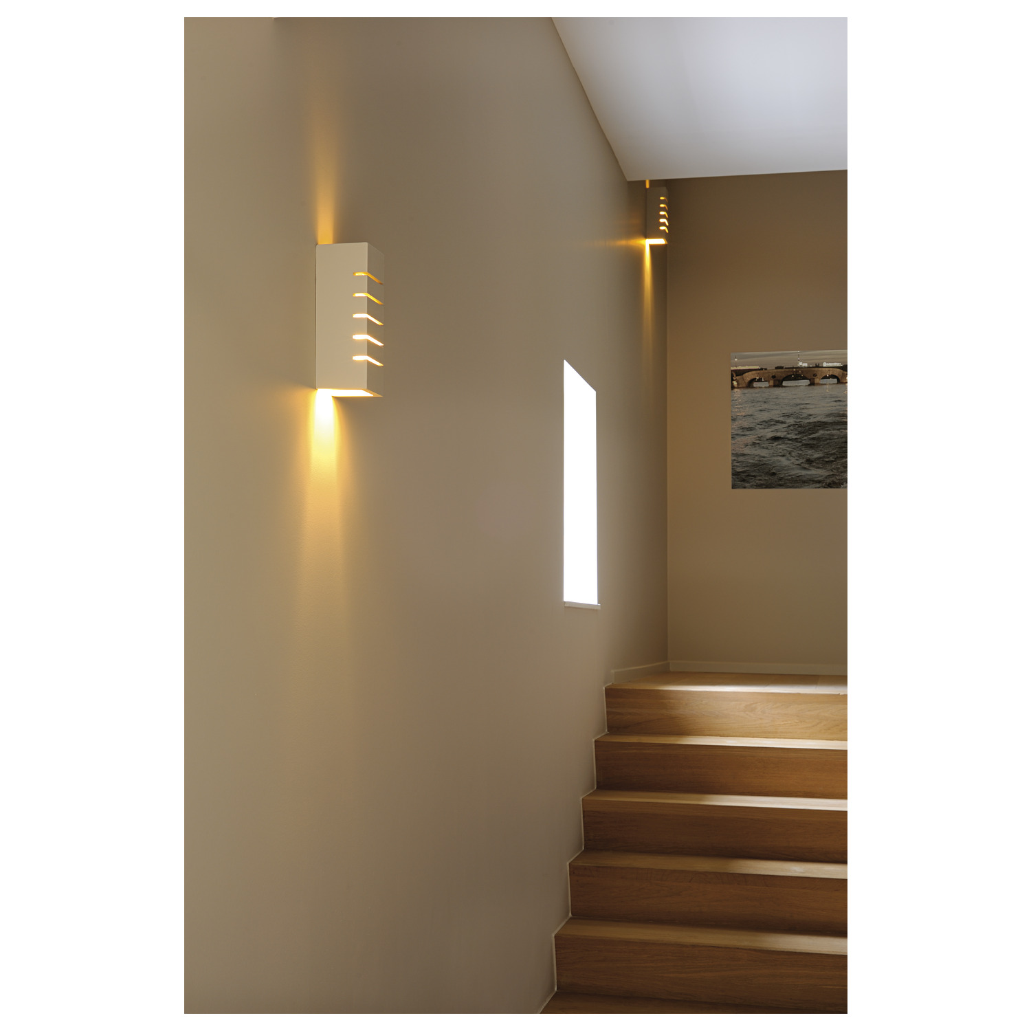 Mit der Gipsleuchte PLASTRA verfügen Sie über eine höchst individuelle Wandleuchte mit puristischer Formgebung. Vorbereitet für die Aufnahme von E14 Allgebrauchs- oder Energiesparlampen ist sie fertig für den direkten Anschluss an 230V Netzspannung. Das im Lieferumfang enthaltene Schleifpapier dient der Oberflächenreinigung. Die Leuchte ist nach Grundierung individuell mit Wandfarbe überstreichbar.