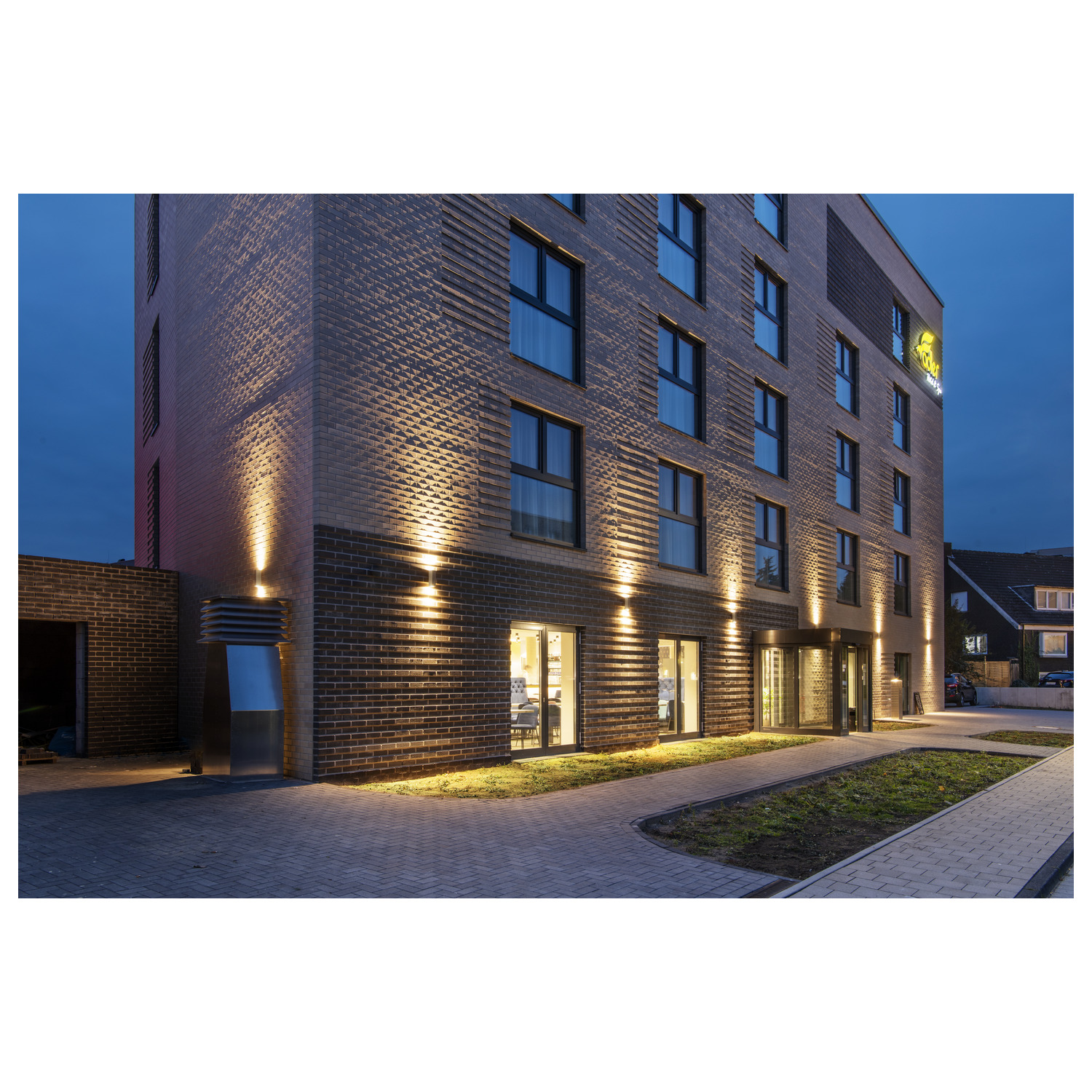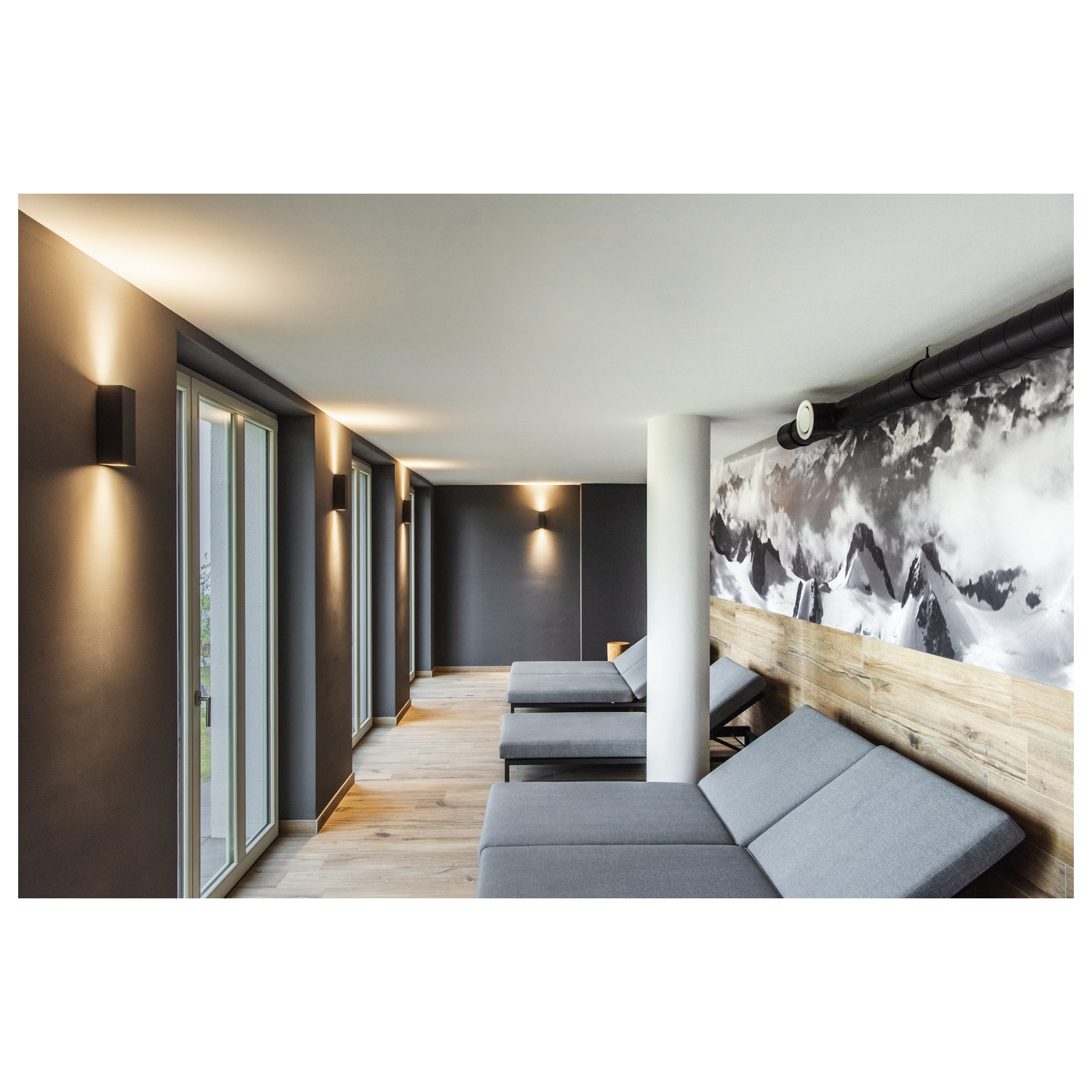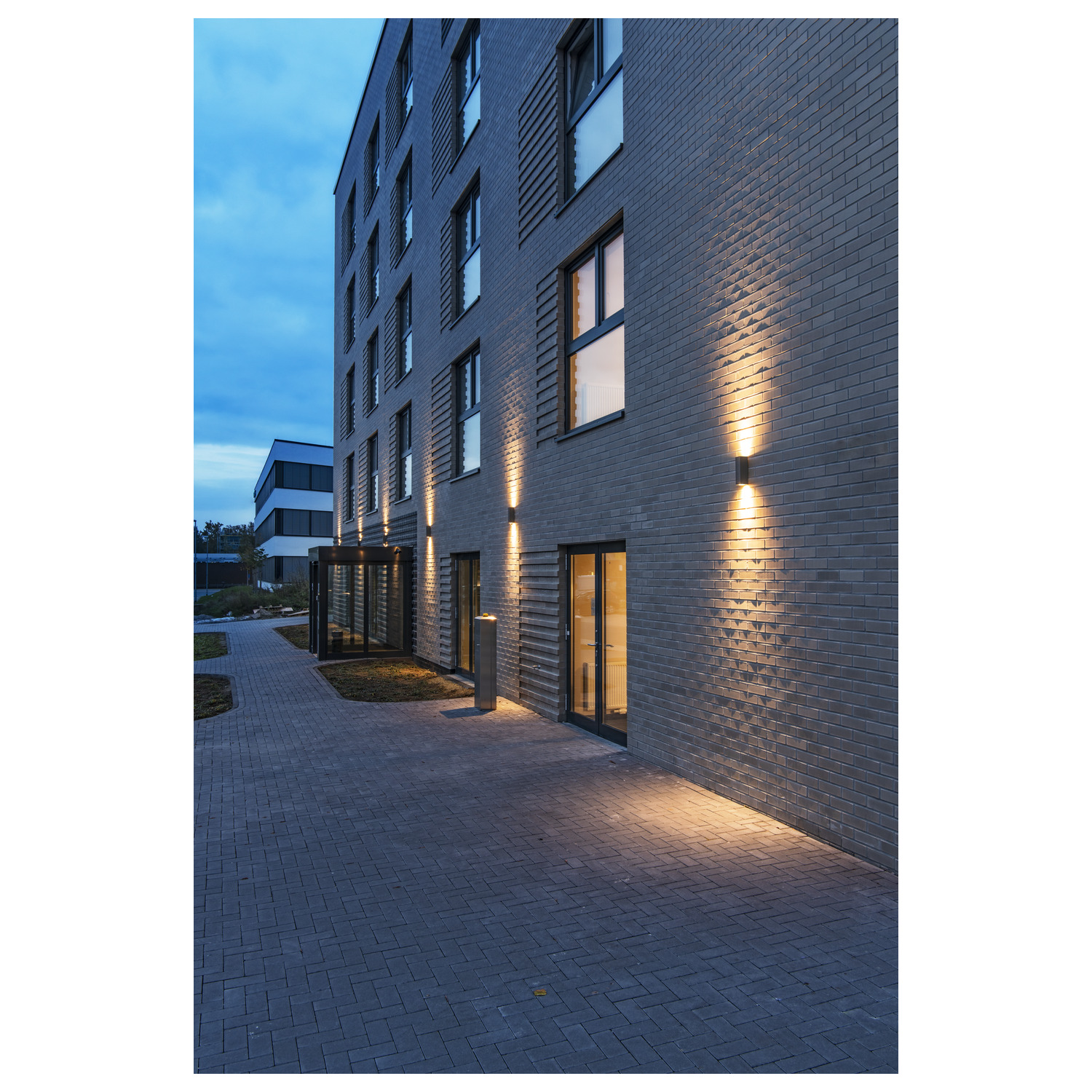 Wandleuchte der THEO Serie gefertigt aus Aluminium und Glas welches die Leuchtmittel abdeckt. Dank der Position der zwei verbauten Fassungen, erzeugt die montierte Leuchte zwei gleiche, jedoch entgegengesetzte Lichtkegel (UP/DOWN). Durch die Schutzart IP44 ist sie für den Außenbereich geeignet. Der elektrische Anschluss der in drei Farbversionen verfügbaren Leuchte erfolgt an 230V Netzspannung. Die THEO Serie beinhaltet des Weiteren Deckenleuchten und ist somit universell einsetzbar.