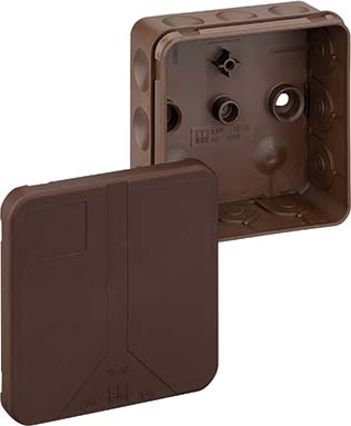 Verbindungsdose, mit Schutzart IP55, Nennquerschnitt 2,5mm², Ui=400V AC, zertifiziert nach VDE (DIN EN 60670-1/-22 (VDE 0606-1/-22)), selbstdichtende, weiche Einführungsmembranen, Dichtbereich 2-14mm, (2 rückseitig, 12 seitlich), innenliegende Befestigungsstellen, für Standardinstallationen im Innenbereich, braun, ohne Klemmen