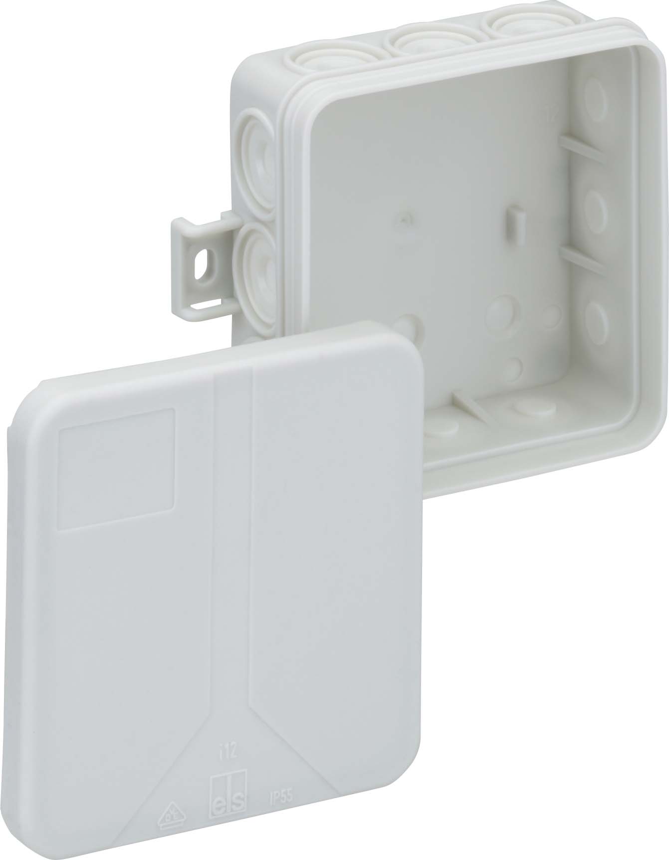 Verbindungsdose, mit Schutzart IP55, Nennquerschnitt 2,5mm², Ui=400V AC, zertifiziert nach VDE (DIN EN 60670-1/-22 (VDE 0606-1/-22)), selbstdichtende Einführungsmembranen, Dichtbereich 8,2-12,5mm, (3 rückseitig, 12 seitlich), innenliegende Befestigungsstellen, für Standardinstallationen im Innenbereich, grau, ohne Klemmen