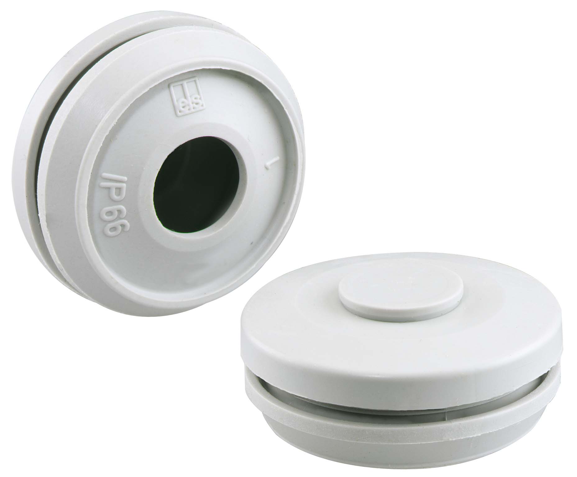 Doppelmembranstutzen, IP66, mit zwei Dichtungsmembranen, geschlossen, thermoplastisches Elastomer (TPE), für Wandstärken 1,5-4,5mm, grau, Dichtbereich 7-12mm