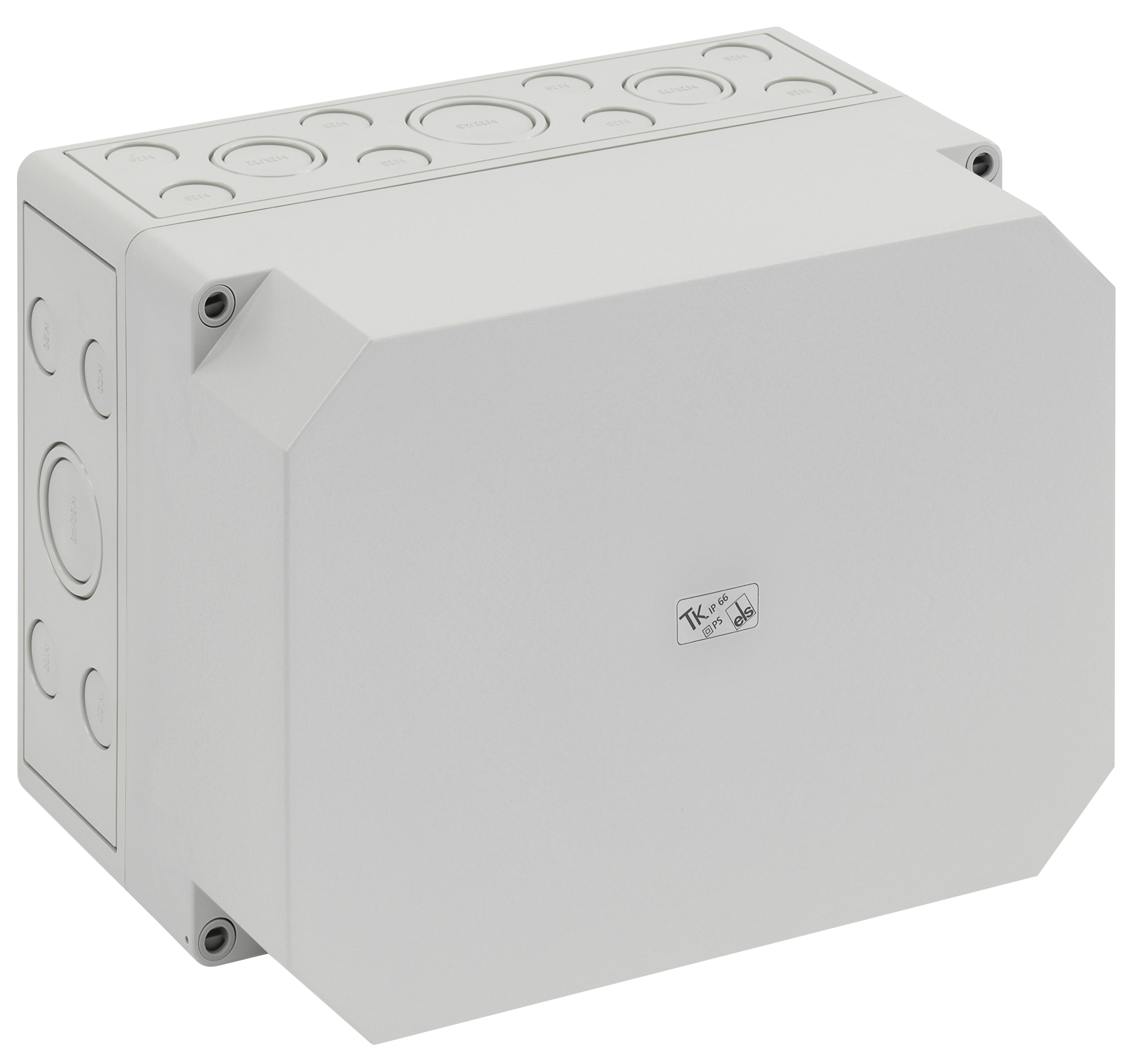 Leergehäuse, mit Schutzart IP66, Polystyrol, Ui=690V AC, Ui=1000V DC, innenliegende Befestigungsstellen, für Standardinstallationen im Innenbereich, Kasten: Polystyrol, grau, Deckel: Polystyrol, grau, Ausschlagmembranen, M20/M25/M32/M40, (32 seitlich)Abmessungen: 254 x 180 x 165mm