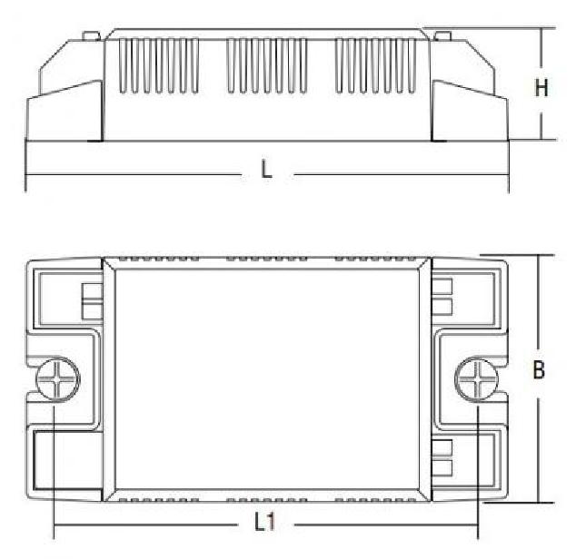 Das FL-EVG besitzt Steckklemmanschlüsse. Die Ein- und Ausgangsklemmen sind auf gegenüberliegenden Seiten befestigt. Das Vorschaltgerät wird mit Schrauben (M4) befestigt.