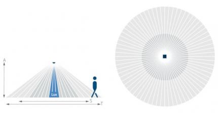Aufbau Passiv-Infarot Präsenzmelder mit rundem Erfassungsbereich und automatische präsenz- und helligkeitsabhängige Steuerung für Beleuchtung und HLK (Heizung, Lüftung, Klima)