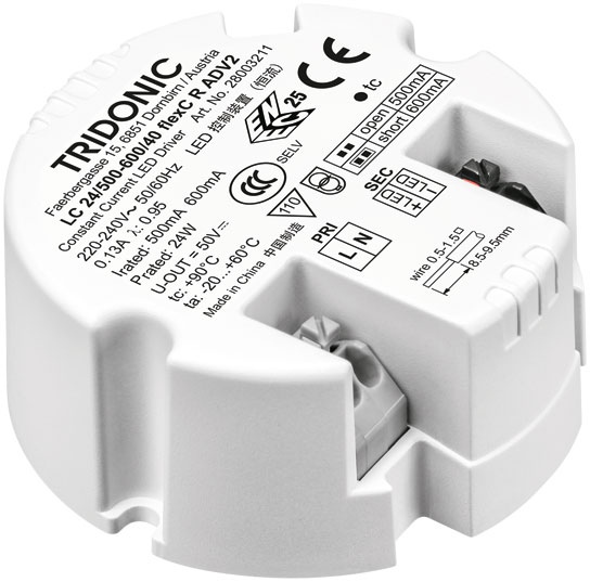 Produktinformationen "Tridonic LED-Treiber LC 24W 500-600mA flexC R ADV2 - 28003211"