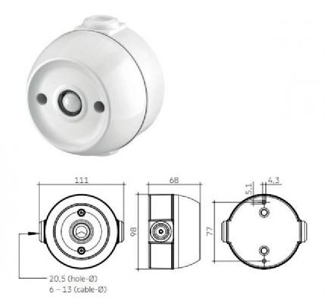 Ein Befestingungssatz mit Schrauben und dekorativen Steckern ist im Lieferumfang enthalten. Die inkludierte 3 mm Dichtung sorgt für den idealen IP-Schutz. Optional gibt es eine Abdeckung zur Reduzierung des Bewegungs- erkennungsbereiches: Der Bereich, in dem Bewegung erkannt wird, kann somit von 360° auf 240° verringert werden.