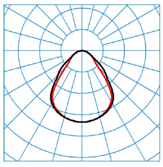Abdeckscheibe aus transluzentem PMMA mit lichttechnisch wirksamer Prismenstruktur. Mit symmetrisch tief-breit strahlender Lichtstärkeverteilung. Blendungsbewertung nach UGR-Einstufung (EN 12464-1) < 19.