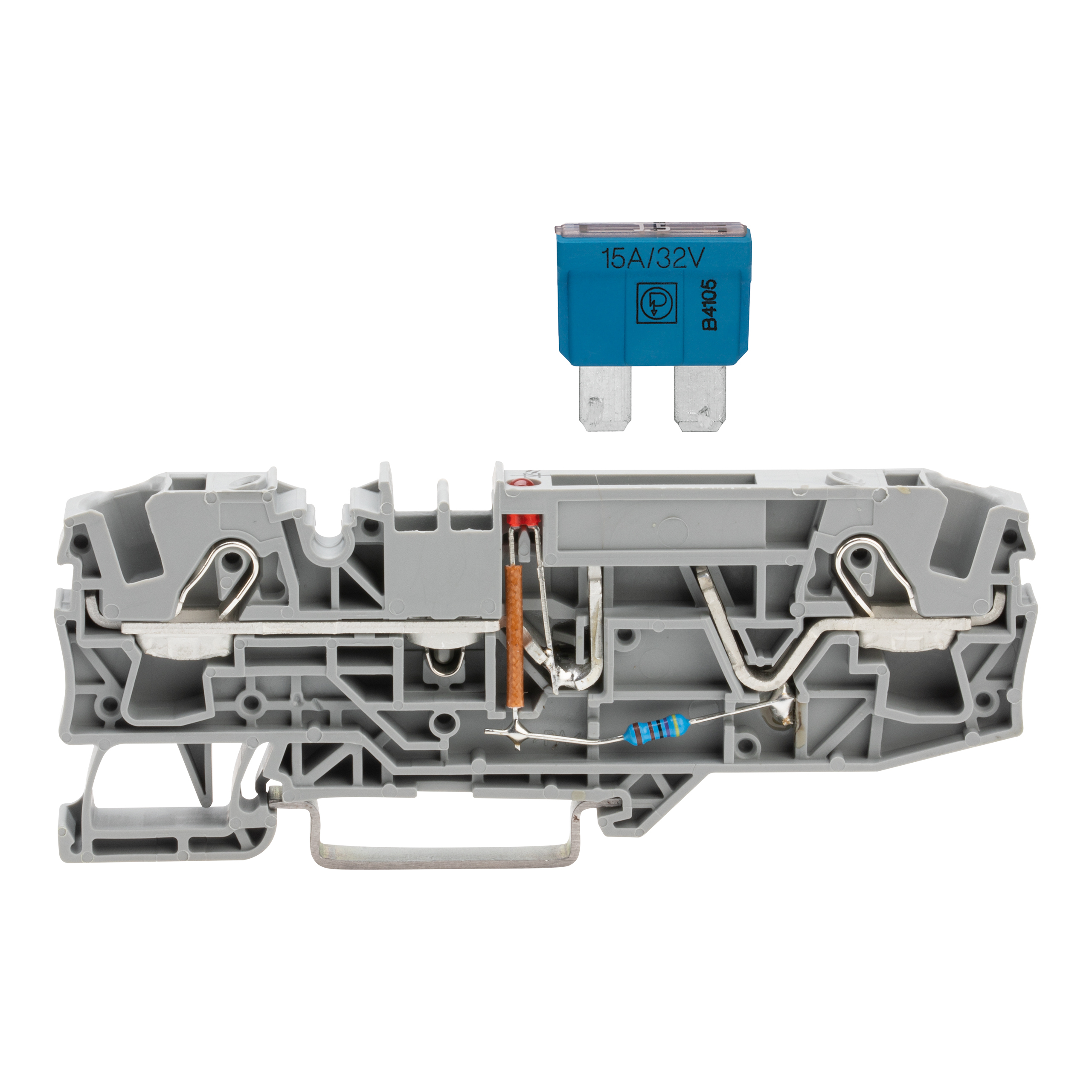 Bei dieser Sicherungsklemme mit der Artikelnummer 2006-1681/1000-434 steht ein schneller und zuverlässiger Anschluss im Vordergrund. Bei dieser Sicherungsklemme ist für den Leiteranschluss eine Abisolierlänge im Bereich von 13 bis 15 mm nötig. Dieses Produkt ist mit der Push-in CAGE CLAMP®-Technologie ausgerüstet. Mit der Push-in CAGE CLAMP® Anschlusstechnik wird der Anschluss aller Leiterarten perfekt. Durch den Zusatznutzen des direkten Steckens können Leiter mit ausreichender Knicksteifigkeit sowie feindrähtige Leiter mit Aderendhülse ohne Werkzeug gesteckt werden. In Abhängigkeit von der Leiterart ist diese Sicherungsklemme gemacht für Leiterquerschnitte von 0,5 mm² bis 10 mm².
