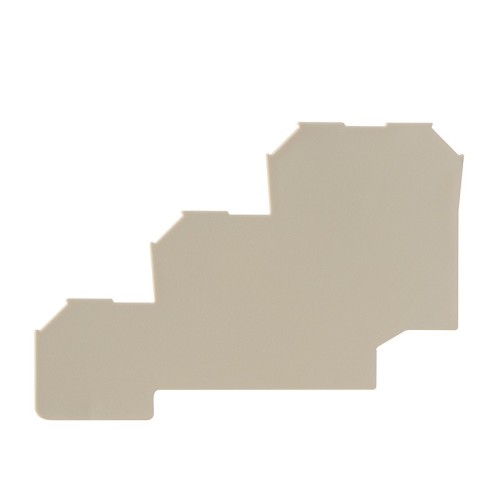 Abschlussplatte für den Berührungsschutz an spannungsführenden Teilen von Reihenklemmen. Die Abschlussplatte wird auch zur optisch erkennbaren Trennung von Stromkreisen eingesetzt, um Verdrahtungsfehler zu vermeiden.