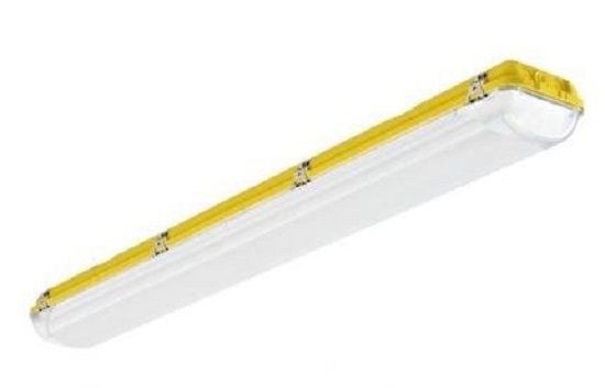 Das Gehäuse der T5-EX-Leuchte besteht aus robustem, glasfaserverstärktem Polyester, das beständig gegen Feuer, Entzündung und Korrosion ist - der Diffusor hingegen aus schlagfestem, transparenten Polycarbonat (IK08 nach IEC 62262).