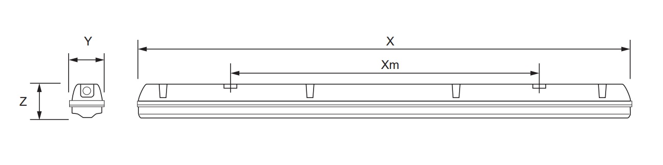 - Gehäuse aus gepresstem, glasfaserverstärktem Polyester in Grau (RAL 7035) mit zwei Geräteträgerhaltern für die Aufhängung zum Anschluss an das Stromnetz.